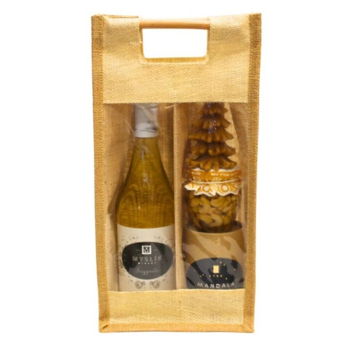 Praktická, pekná a nadčasová jutová taška so skvelými produktmi vo vnútri.