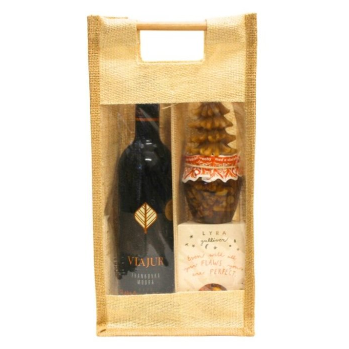 Praktická, pekná a nadčasová jutová taška so skvelými produktmi vo vnútri.