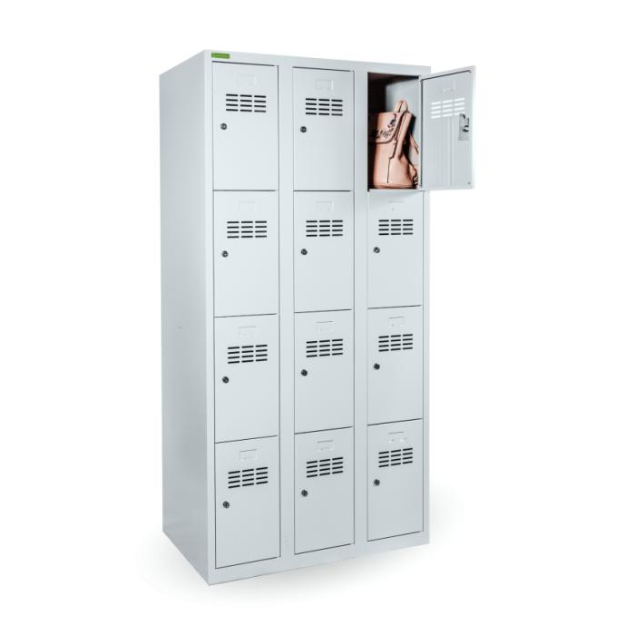 Častokrát nie je praktické nechať si peňaženku, mobilný telefón alebo sendvič na obed v šatni. Skriňa na úschovu cenností s 12 priehradkami je preto veľmi užitočným pomocníkom, vhodná do výroby, do škôl, do nemocníc, do nákupných centier, do wellness, fitness.