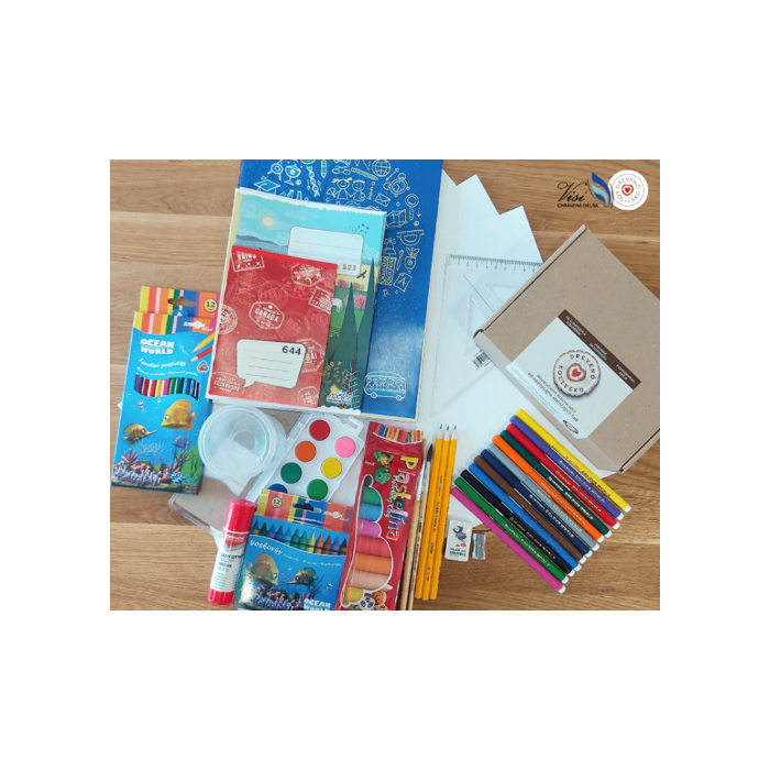 Sada zošitov a školských pomôcok pre 1. ročník základnej školy od chránenej dielne VISI a sociálneho podniku Drevenô koliesko