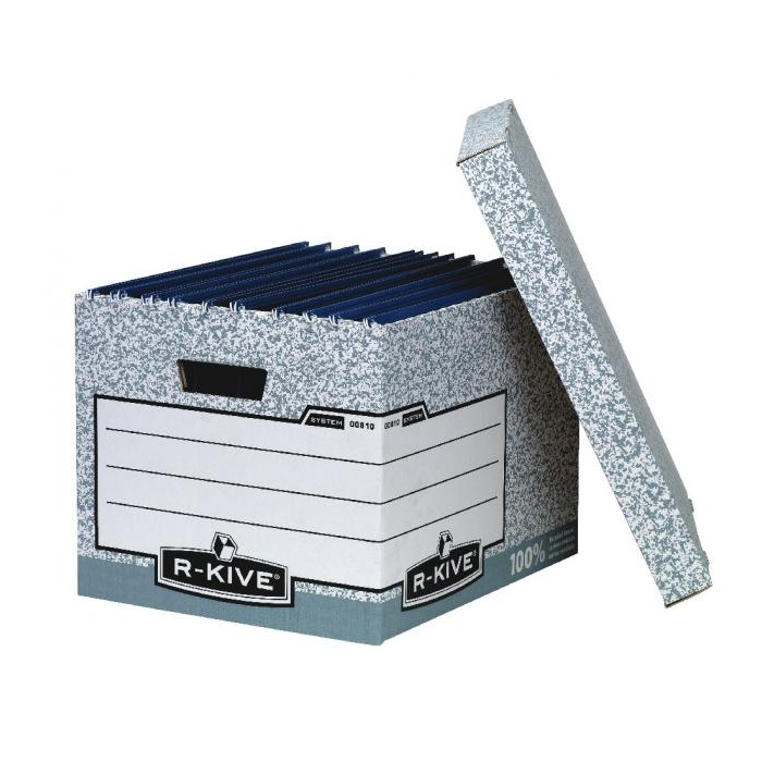 Krabica s odnímateľným vekom a bočnými výrezmi na uchytenie. Mierne zväčšené veko umožňuje uskladnenie dokumentov archivovaných v závesných obaloch. Kompatibilná s archívnymi boxami. Dodávaná v rozloženom stave naplocho. Väčšie balenie 10 ks. Farba sivá/-biela. Rozmery v cm: 32,5x28x38,5 Farba: sivá/biela