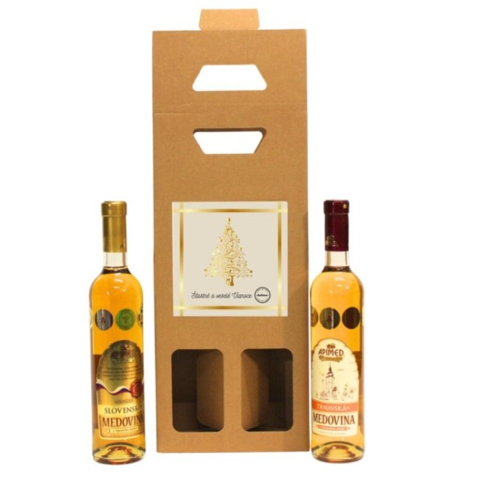 Praktická kartónová odnoska na 2 fľaše s elegantným vianočným prianím a kvalitným obsahom.