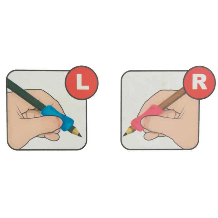 Držiak na ceruzky, pastelky, perá. Ergonomický tvar, ktorý je ideálny pre učenie sa písať. Mäkký a flexibilný, príjemný na dotyk, pre pravákov aj ľavákov. Blister 2 ks. Farba: mix farieb.