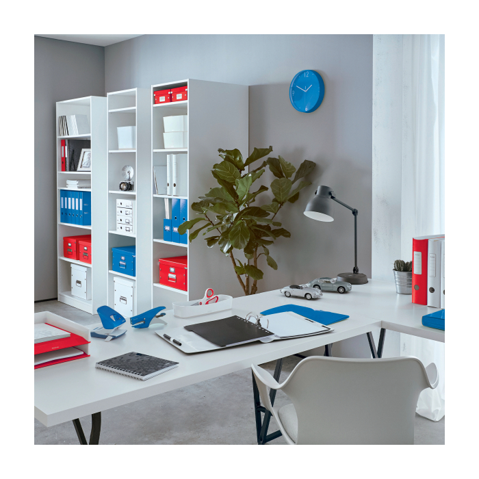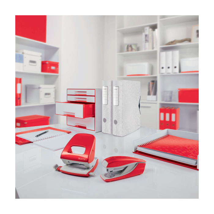 Elektrická zošívačka Leitz New NeXXt WOW. Vďaka jednoduchému ovládaniu jednou rukou je ideálna na časté používanie. Technológia s napájaním na batérie na zošívanie v pohybe. V žiarivých farbách WOW. Batérie (4× 1,5 V AAA LR03) nie sú súčasťou balenia. Kapacita 10 listov. Náhradné spinky ES556800. Farba červená.