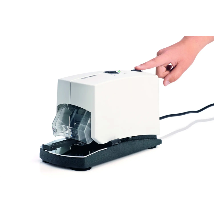Profesionálna elektrická zošívačka v modernom dizajne pre každodenné použitie v kanceláriach. Zásobník spiniek s kovovým osadením a dvojitým vedením. Kapacita náplne 210 spiniek ozn. NE 6, NE 8. Hĺbka zošívania 5 cm. Hmotnosť 4700 g. Napájanie z elektrickej siete 230 V/ 50 Hz. Farba: sivá Kapacita listov: 40 Hĺbka zošívania: 5 cm
