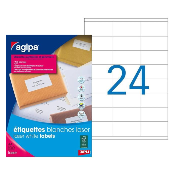 Etikety laser 70x37mm Agipa A4 100 hárkov