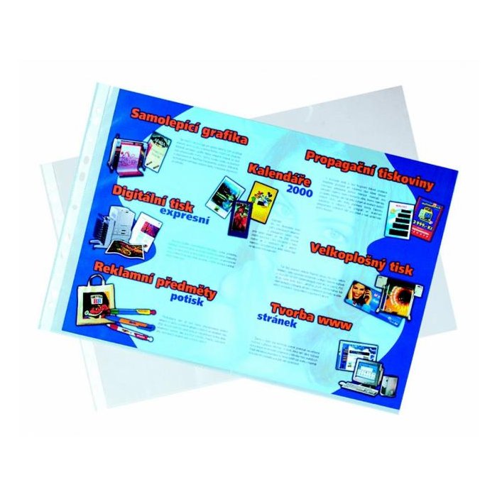 Polypropylénové priehľadné euroobaly v lesklej úprave. Formát A3 zložený do formátu A4. Balené v krabici. Balenie 50 ks. Formát: A3. Hrúbka: 75 mic.
