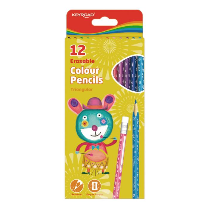 Farbičky KEYROAD s gumou, 12 farieb