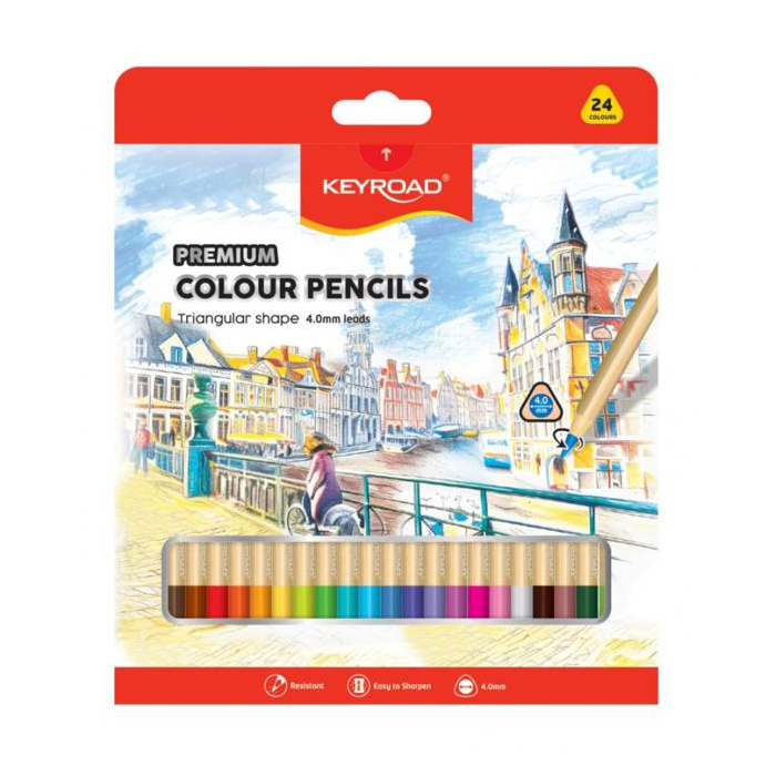 Farbičky KEYROAD trojhranné, 24 ks, mix farieb