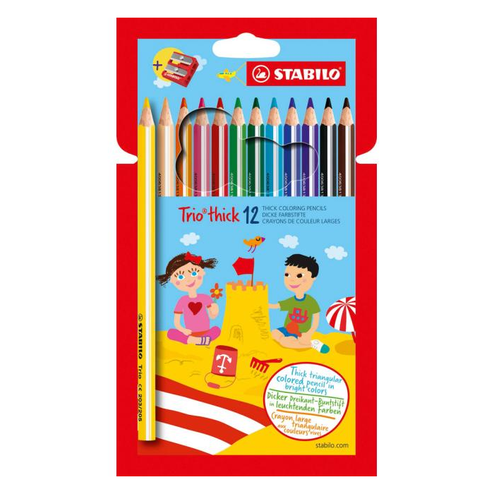 Drevená farebná ceruzka v ergonomickom trojhrannom dizajne a silnou 4,2 mm tuhou. Sada 12 ceruziek sýtych farieb s praktickým otváraním a strúhadlom. Väčšie balenie 12 sád.