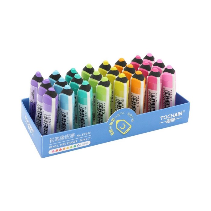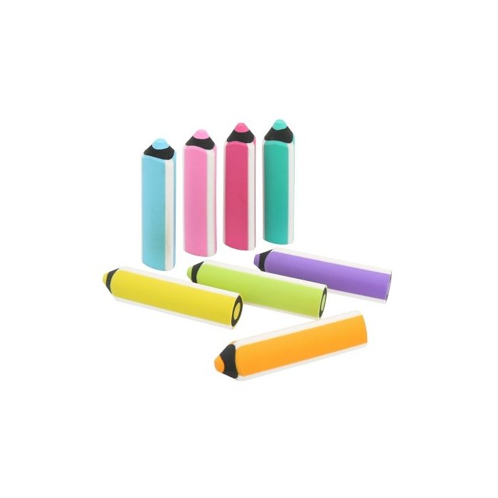 Mäkká guma v tvare pastelky s trojhranným telom zaujme každého školáka (8 farieb).