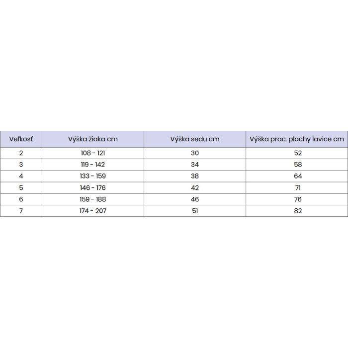 • výška pracovnej dosky je 52 cm