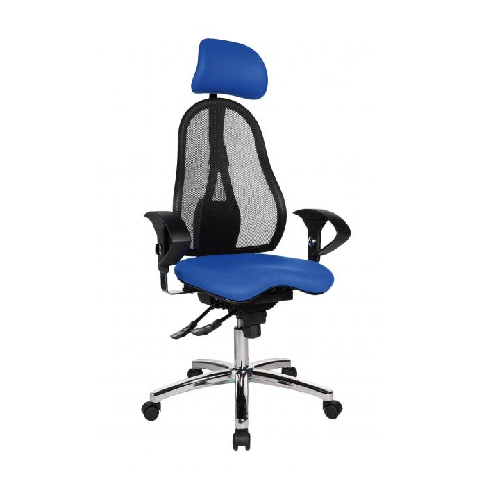 • obrysovo tvarované dizajnové operadlo s priedušným poťahom zo sieťoviny, plynule výškovo nastaviteľné