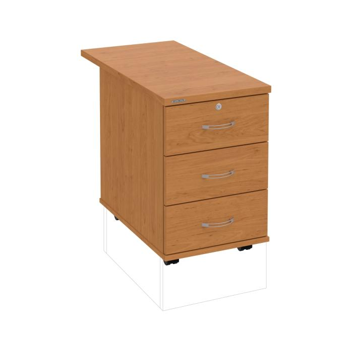Kontajnery - všetko uložené a vždy poruke. Kontajnery sa väčšinou umiestňujú pod stoly. Mobilné modely sú vybavené kolieskami, je možné ich premiestniť podľa potreby. Základným materiálom korpusov je kvalitná laminovaná drevotriesková doska hrúbky 18 mm. Pre dlhšiu životnosť je na horný diel korpusu použitá doska, ktorej hrúbka je 25 mm. Korpusy a čelá zásuviek sú chránené proti poškodeniu hranou ABS 2 mm. Horná doska ma hĺbku 80. 3-zásuvkový kontajner má uzamykatelnú iba 1 zásuvku. Zásuvky sú z plastu, ktorý je ľahko umývateľný a vhodný pre jednoduchú údržbu. Praktickou súčasťou vrchnej zásuvky je prehľadný organizér a priestorové deliace priečky. Vaše ceruzky, sponky a ďalšie kancelárske potreby budú vždy na poriadku. Organizér a deliace priečky sú súčasťou každého kontajnera. Na kontajnery Hobis sa vzťahuje päťročná záruka.