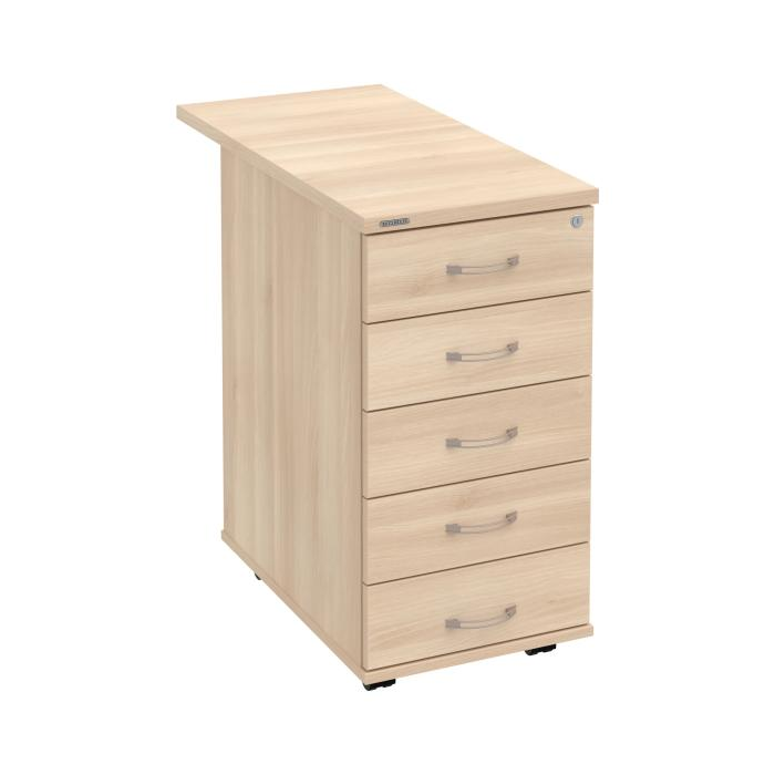 Kontajnery - všetko uložené a vždy poruke. Kontajnery sa väčšinou umiestňujú pod stoly. Mobilné modely sú vybavené kolieskami, je možné ich premiestniť podľa potreby. Základným materiálom korpusov je kvalitná laminovaná drevotriesková doska hrúbky 18 mm. Pre dlhšiu životnosť je na horný diel korpusu použitá doska, ktorej hrúbka je 25 mm. Korpusy a čelá zásuviek sú chránené proti poškodeniu hranou ABS 2 mm. Horná doska ma hĺbku 80 cm. Kontajnery sú vybavené zámkom s centrálnym zamykaním. Vďaka integrovanému systému STOP-CONTROL s centrálnym zámkom u väčšiny kontajnerov sa nemusíte báť prevrhnutiu kontajnera alebo prípadného privretia ruky. Systém zaručí, že pri otvorení jednej zásuvky sa ostatné zásuvky automaticky zablokujú. Zásuvky sú z plastu, ktorý je ľahko umývateľný a vhodný pre jednoduchú údržbu. Praktickou súčasťou vrchnej zásuvky je prehľadný organizér a priestorové deliace priečky. Vaše ceruzky, sponky a ďalšie kancelárske potreby budú vždy na poriadku. Organizér a deliace priečky sú súčasťou každého kontajnera. Na kontajnery Hobis sa vzťahuje päťročná záruka.
