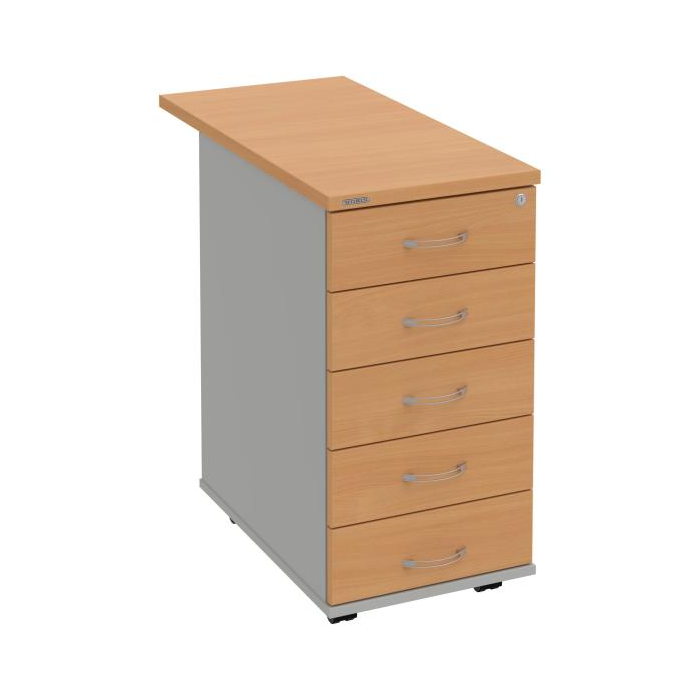 Kontajnery - všetko uložené a vždy poruke. Kontajnery sa väčšinou umiestňujú pod stoly. Mobilné modely sú vybavené kolieskami, je možné ich premiestniť podľa potreby. Základným materiálom korpusov je kvalitná laminovaná drevotriesková doska hrúbky 18 mm. Pre dlhšiu životnosť je na horný diel korpusu použitá doska, ktorej hrúbka je 25 mm. Korpusy a čelá zásuviek sú chránené proti poškodeniu hranou ABS 2 mm. Horná doska ma hĺbku 80 cm. Kontajnery sú vybavené zámkom s centrálnym zamykaním. Vďaka integrovanému systému STOP-CONTROL s centrálnym zámkom u väčšiny kontajnerov sa nemusíte báť prevrhnutiu kontajnera alebo prípadného privretia ruky. Systém zaručí, že pri otvorení jednej zásuvky sa ostatné zásuvky automaticky zablokujú. Zásuvky sú z plastu, ktorý je ľahko umývateľný a vhodný pre jednoduchú údržbu. Praktickou súčasťou vrchnej zásuvky je prehľadný organizér a priestorové deliace priečky. Vaše ceruzky, sponky a ďalšie kancelárske potreby budú vždy na poriadku. Organizér a deliace priečky sú súčasťou každého kontajnera. Na kontajnery Hobis sa vzťahuje päťročná záruka.