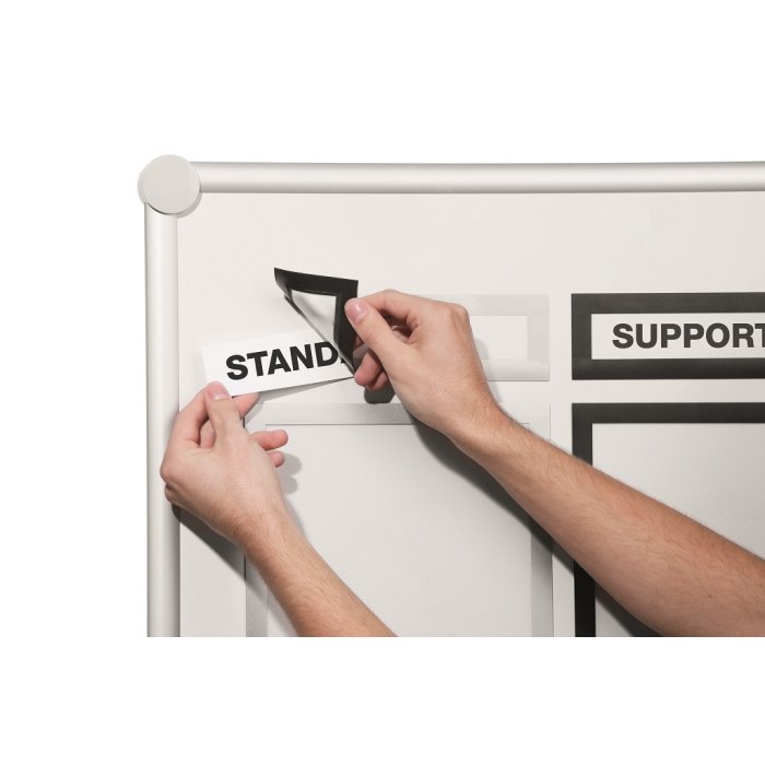 Informačný panel na titulky štruktúr informačných materiálov s magnetickou časťou na zadnej strane rámika na jednoduché a rýchle vkladanie informácie. Vonkajšie rozmery 236 × 66 mm, list na potlačenie 210 × 40 mm. Vhodný na hladké magnetické povrchy, napr. magnetickú tabuľu. Farba čierna. Balenie 5 ks.