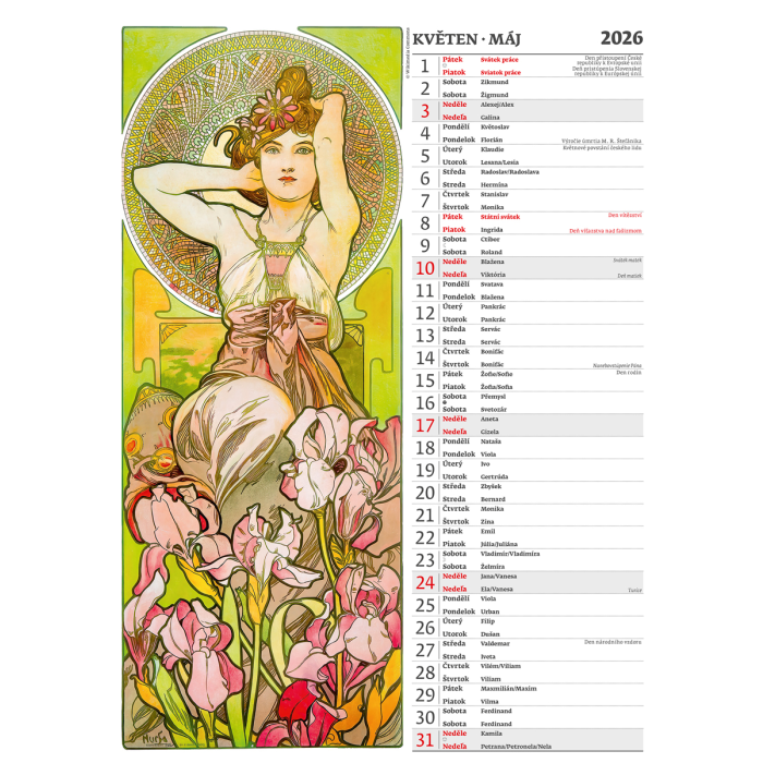 Nástenný kalendár Alfons Mucha 24 x 33 cm 2026
