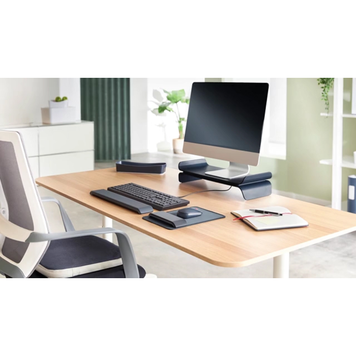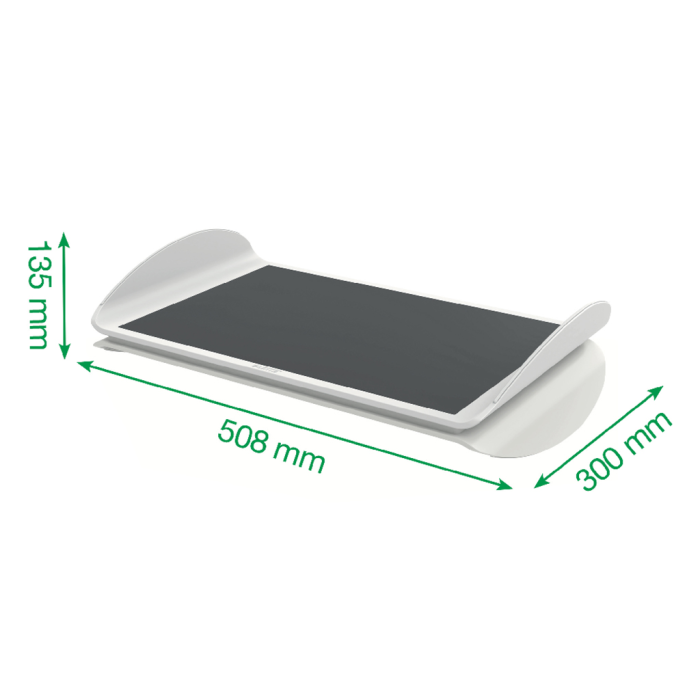 Podnožka pod stôl Leitz Ergo je dokonalá opierka na nohy, ktorá pomáha vytvoriť pohodlné a aktívne pracovné miesto. Nastaviteľná počítačová opierka nôh má 2 výškové nastavenia s plochou aj zakrivenou platformou, ktorá zaisťuje správne ergonomické držanie tela a polohu pri písaní. Zostaňte pri práci aktívni vďaka hojdavému pohybu, ktorý podporuje zdravý krvný obeh a zvyšuje produktivitu. Pomáha znižovať nepohodlie a stuhnutosť, ktoré môžu byť dôsledkom dlhodobého sedenia. Nastaviteľná výška pre maximálne pohodlie a zaistenie správnej polohy sedenia. Jednoduchým otočením opierky nôh si môžete vybrať z dvoch výškových nastavení (78 mm/128 mm). Jedna plochá a jedna zakrivená protišmyková platforma pre podporu akejkoľvek veľkosti nôh. Hmotnosť 2,62 kg.