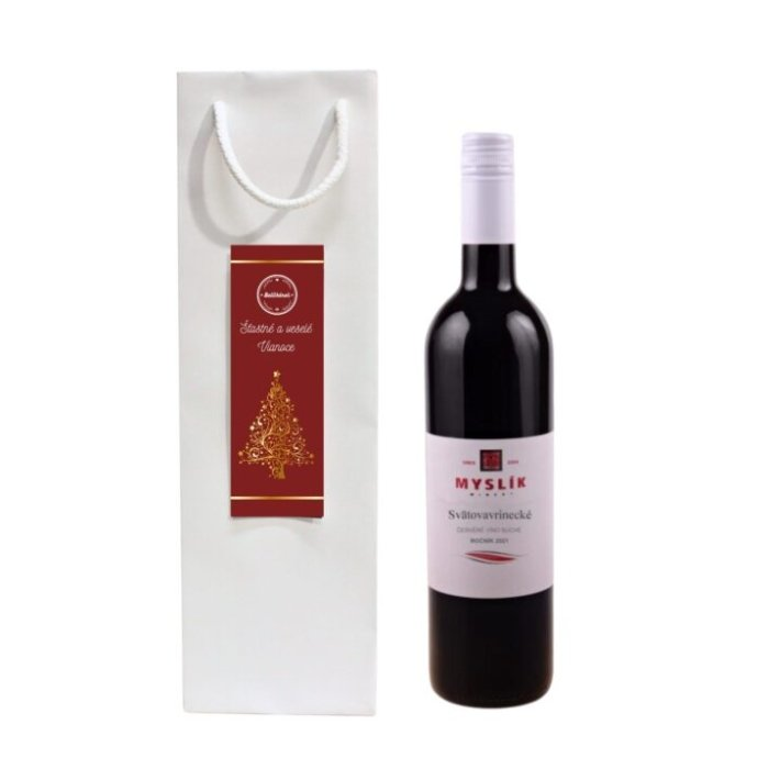 Biela papierová, pevná taška s elegantným vianočným prianím a kvalitným obsahom.