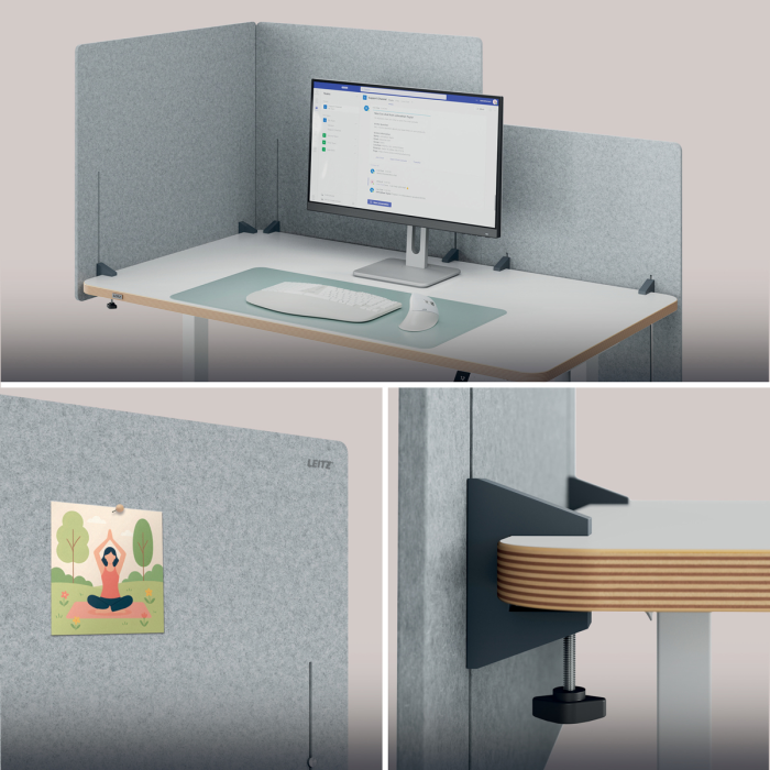 Medzery medzi doskou stola a deliacimi panelmi pre káble a