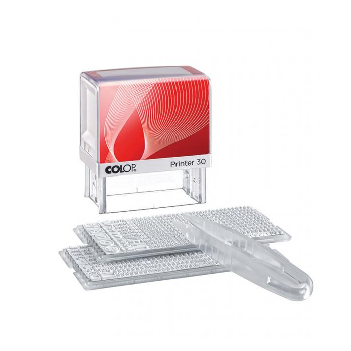 Súprava Printer 20/ 1 Set pre maximálne 4 riadky textu je dodávaná vrátane pečiatkovej podušky, typovej sady 3,5 mm a pinzety. Náhradná poduška E/20 čierna. Veľkosť odtlačku: 38 x 14 mm.