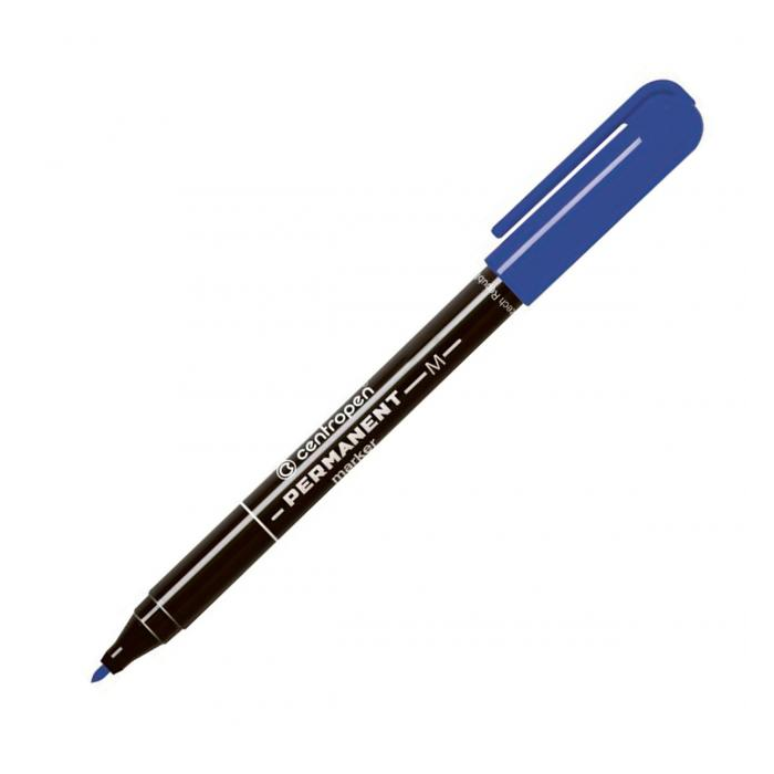 Permanentný popisovač s atramentom na alkoholovej báze a vláknovým hrotom. Vhodný na plastické hmoty, sklo, filmy a pod. Šírka stopy 1 mm. Väčšie balenie 10 ks. Farba: modrá Šírka stopy: 1 mm Typ hrotu: vláknový
