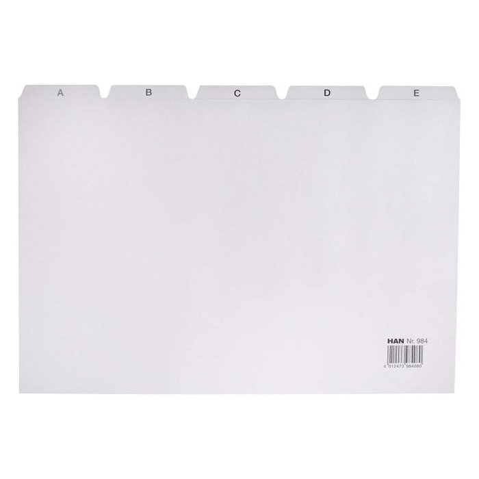 Indexové kartičky A-Z pre stolové kartotéky HAN. Farba sivá.