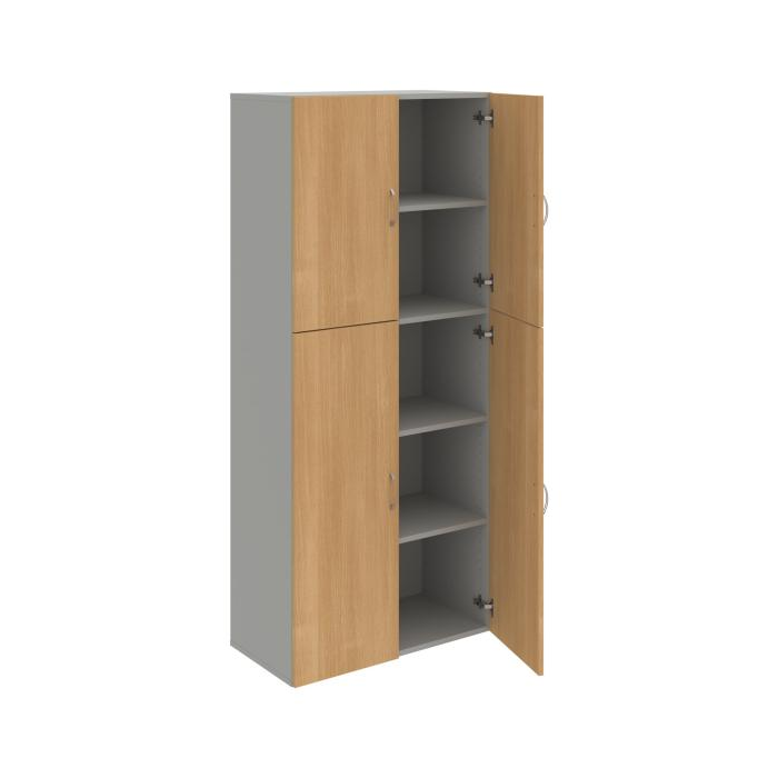 Dôraz na funkčnosť a cenu. Kvalita a variabilita s nízkymi obstarávacími nákladmi. Materiály výrobcov z Európskej únie. Obojstranne pohľadový chrbát. Zabezpečenie políc proti náhodnému vysunutiu. V našej ponuke nájdete skriňové moduly výšky 185 cm, 111 cm alebo 74 cm a šírky 80 cm alebo 40 cm. Hĺbka všetkých modelov skríň radu Drive je 40 cm (42 cm s dverami). Chrbát, vyrobený z 3 mm hrubých dosiek HDF, je obojstranne pohľadový, takže skrine môžete použiť ako priestorový deliaci prvok. Vďaka polohovateľným policiam (hrúbky 18 mm) je možné priestor prispôsobiť Vašim predstavám. Základná výška úložného priestoru je prispôsobená výške štandardného šanónu.Dvere sú chránené 2mm hranou ABS a osadené kvalitným kovaním s doživotnou zárukou. Okrem plných a presklených dverí Vám ponúkame aj skrine s roletovým systémom.Pokiaľ sa rozhodnete pre umiestnenie skríň na podlahu, nezabudnite si doobjednať rektifikačné nohy, ktoré nie sú štandardnou súčasťou objednávky. Aby sa zásielka dostala v poriadku až do Vašej kancelárie, dodávame skrine demontované v niekoľkých samostatných a bezpečne zabalených balíkoch. Súčasťou každého balenia je tiež prehľadný návod. Na skrine Drive dostanete záruku 5 rokov.