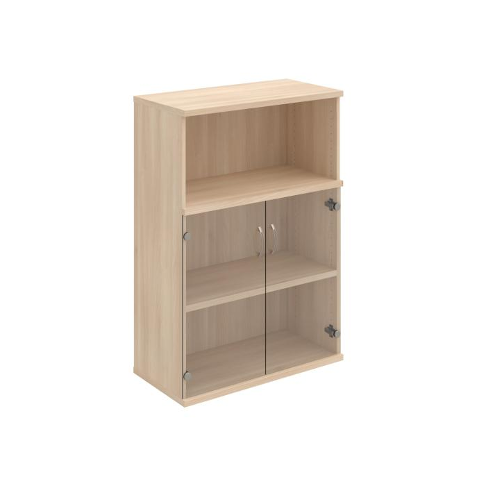 Kombinovaná skriňa - dvere/nika. Kancelárske skrine STRONG majú robustnú konštrukciu a vyššiu nosnosť políc ako bežné kancelárske skrine.V ponuke sú skriňové moduly s výškou 185 cm, 111 cm alebo 74 cm a šírky 80 cm alebo 40 cm. Hĺbka všetkých modelov skriňového radu STRONG je 40 cm.Chrbát, vyrobený z 8 mm hrubých dosák, je obojstranne pohľadový, takže skrine môžete použiť ako priestorový deliaci prvok. Hrúbka samotných políc je 25 mm, čo znamená nosnosť 80 kg na 1 policu.Korpusy, dvierka a police skríň sú olepené odolnou 2mm ABS hranou, ktorá garantuje dostatočnú ochranu proti poškodeniu.