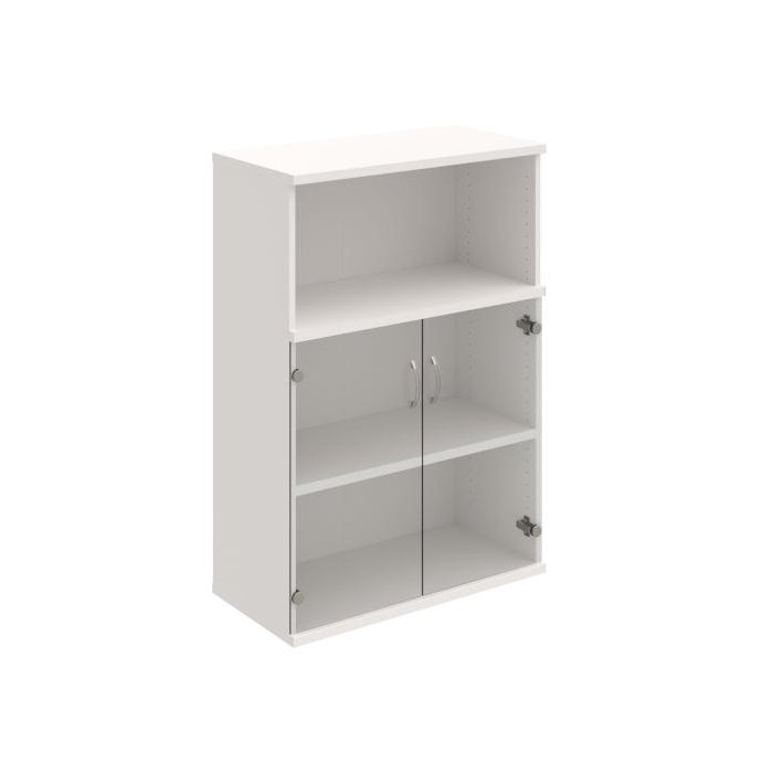 Kombinovaná skriňa - dvere/nika. Kancelárske skrine STRONG majú robustnú konštrukciu a vyššiu nosnosť políc ako bežné kancelárske skrine.V ponuke sú skriňové moduly s výškou 185 cm, 111 cm alebo 74 cm a šírky 80 cm alebo 40 cm. Hĺbka všetkých modelov skriňového radu STRONG je 40 cm.Chrbát, vyrobený z 8 mm hrubých dosák, je obojstranne pohľadový, takže skrine môžete použiť ako priestorový deliaci prvok. Hrúbka samotných políc je 25 mm, čo znamená nosnosť 80 kg na 1 policu.Korpusy, dvierka a police skríň sú olepené odolnou 2mm ABS hranou, ktorá garantuje dostatočnú ochranu proti poškodeniu.