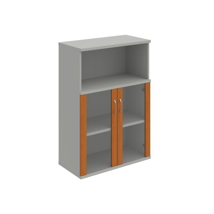 Kombinovaná skriňa - dvere/nika. Kancelárske skrine STRONG majú robustnú konštrukciu a vyššiu nosnosť políc ako bežné kancelárske skrine.V ponuke sú skriňové moduly s výškou 185 cm, 111 cm alebo 74 cm a šírky 80 cm alebo 40 cm. Hĺbka všetkých modelov skriňového radu STRONG je 40 cm.Chrbát, vyrobený z 8 mm hrubých dosák, je obojstranne pohľadový, takže skrine môžete použiť ako priestorový deliaci prvok. Hrúbka samotných políc je 25 mm, čo znamená nosnosť 80 kg na 1 policu.Korpusy, dvierka a police skríň sú olepené odolnou 2mm ABS hranou, ktorá garantuje dostatočnú ochranu proti poškodeniu.