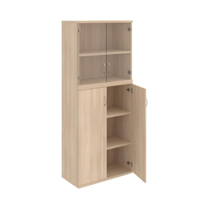 Kombinovaná skriňa - dvere/nika. Kancelárske skrine STRONG majú robustnú konštrukciu a vyššiu nosnosť políc ako bežné kancelárske skrine.V ponuke sú skriňové moduly s výškou 185 cm, 111 cm alebo 74 cm a šírky 80 cm alebo 40 cm. Hĺbka všetkých modelov skriňového radu STRONG je 40 cm.Chrbát, vyrobený z 8 mm hrubých dosák, je obojstranne pohľadový, takže skrine môžete použiť ako priestorový deliaci prvok. Hrúbka samotných políc je 25 mm, čo znamená nosnosť 80 kg na 1 policu.Korpusy, dvierka a police skríň sú olepené odolnou 2mm ABS hranou, ktorá garantuje dostatočnú ochranu proti poškodeniu.