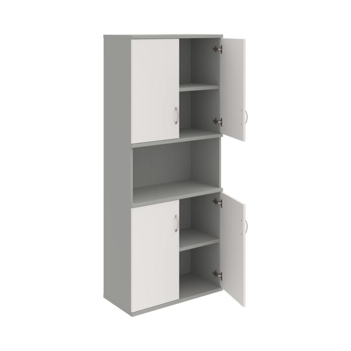 Kombinovaná skriňa - dvere/nika. Kancelárske skrine STRONG majú robustnú konštrukciu a vyššiu nosnosť políc ako bežné kancelárske skrine.V ponuke sú skriňové moduly s výškou 185 cm, 111 cm alebo 74 cm a šírky 80 cm alebo 40 cm.Hĺbka všetkých modelov skriňového radu STRONG je 40 cm.Chrbát, vyrobený z 8 mm hrubých dosák, je obojstranne pohľadový, takže skrine môžete použiť ako priestorový deliaci prvok. Hrúbka samotných políc je 25 mm, čo znamená nosnosť 80 kg na 1 policu.Korpusy, dvierka a police skríň sú olepené odolnou 2mm ABS hranou, ktorá garantuje dostatočnú ochranu proti poškodeniu.