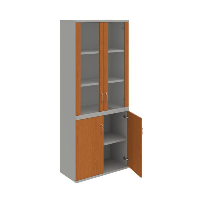 Kombinovaná skriňa - dvere/nika. Kancelárske skrine STRONG majú robustnú konštrukciu a vyššiu nosnosť políc ako bežné kancelárske skrine.V ponuke sú skriňové moduly s výškou 185 cm, 111 cm alebo 74 cm a šírky 80 cm alebo 40 cm. Hĺbka všetkých modelov skriňového radu STRONG je 40 cm.Chrbát, vyrobený z 8 mm hrubých dosák, je obojstranne pohľadový, takže skrine môžete použiť ako priestorový deliaci prvok. Hrúbka samotných políc je 25 mm, čo znamená nosnosť 80 kg na 1 policu.Korpusy, dvierka a police skríň sú olepené odolnou 2mm ABS hranou, ktorá garantuje dostatočnú ochranu proti poškodeniu.