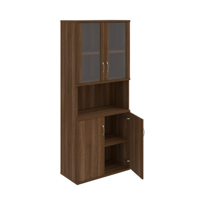 Kombinovaná skriňa - dvere/nika. Kancelárske skrine STRONG majú robustnú konštrukciu a vyššiu nosnosť políc ako bežné kancelárske skrine.V ponuke sú skriňové moduly s výškou 185 cm, 111 cm alebo 74 cm a šírky 80 cm alebo 40 cm. Hĺbka všetkých modelov skriňového radu STRONG je 40 cm.Chrbát, vyrobený z 8 mm hrubých dosák, je obojstranne pohľadový, takže skrine môžete použiť ako priestorový deliaci prvok. Hrúbka samotných políc je 25 mm, čo znamená nosnosť 80 kg na 1 policu.Korpusy, dvierka a police skríň sú olepené odolnou 2mm ABS hranou, ktorá garantuje dostatočnú ochranu proti poškodeniu.