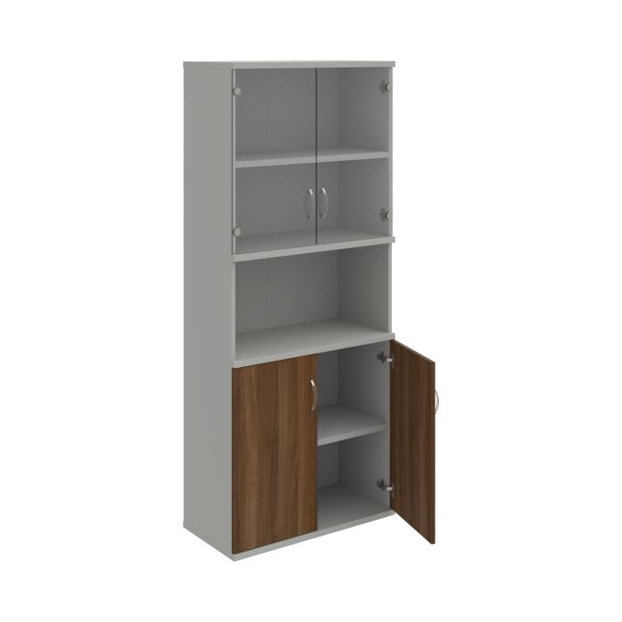 Kombinovaná skriňa - dvere/nika. Kancelárske skrine STRONG majú robustnú konštrukciu a vyššiu nosnosť políc ako bežné kancelárske skrine.V ponuke sú skriňové moduly s výškou 185 cm, 111 cm alebo 74 cm a šírky 80 cm alebo 40 cm. Hĺbka všetkých modelov skriňového radu STRONG je 40 cm.Chrbát, vyrobený z 8 mm hrubých dosák, je obojstranne pohľadový, takže skrine môžete použiť ako priestorový deliaci prvok. Hrúbka samotných políc je 25 mm, čo znamená nosnosť 80 kg na 1 policu.Korpusy, dvierka a police skríň sú olepené odolnou 2mm ABS hranou, ktorá garantuje dostatočnú ochranu proti poškodeniu.