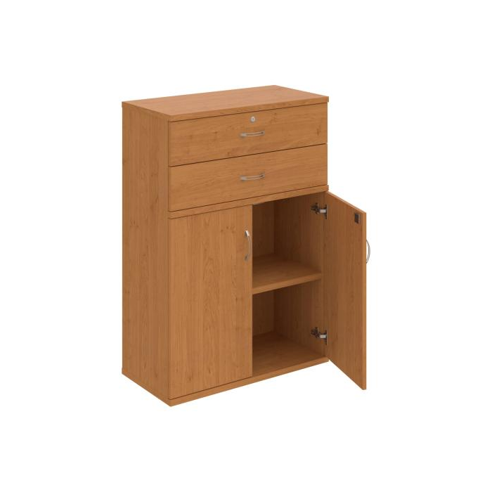 Kancelárske skrine STRONG majú robustnú konštrukciu a vyššiu nosnosť políc ako bežné kancelárske skrine.V ponuke sú skriňové moduly s výškou 185 cm, 111 cm alebo 74 cm a šírky 80 cm alebo 40 cm. Hĺbka všetkých modelov skriňového radu STRONG je 40 cm.Chrbát, vyrobený z 8 mm hrubých dosák, je obojstranne pohľadový, takže skrine môžete použiť ako priestorový deliaci prvok. Hrúbka samotných políc je 25 mm, čo znamená nosnosť 80 kg na 1 policu.Korpusy, dvierka a police skríň sú olepené odolnou 2mm ABS hranou, ktorá garantuje dostatočnú ochranu proti poškodeniu.
