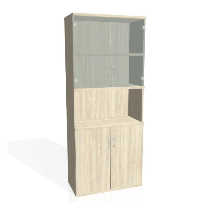 Kombinovaná skriňa - dvere/nika. Kancelárske skrine STRONG majú robustnú konštrukciu a vyššiu nosnosť políc ako bežné kancelárske skrine.V ponuke sú skriňové moduly s výškou 185 cm, 111 cm alebo 74 cm a šírky 80 cm alebo 40 cm. Hĺbka všetkých modelov skriňového radu STRONG je 40 cm.Chrbát, vyrobený z 8 mm hrubých dosák, je obojstranne pohľadový, takže skrine môžete použiť ako priestorový deliaci prvok. Hrúbka samotných políc je 25 mm, čo znamená nosnosť 80 kg na 1 policu.Korpusy, dvierka a police skríň sú olepené odolnou 2mm ABS hranou, ktorá garantuje dostatočnú ochranu proti poškodeniu.