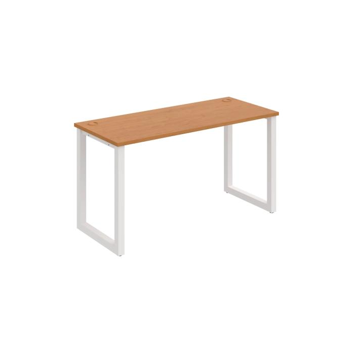 Pracovný stôl rovný. Doska stola z kvalitnej laminovanej drevotriesky. Pevná samonosná kovová konštrukcia podnože zo štvorcových profilov 50 x 50 mm je tvorená kompaktnými pármi nôh, ktoré sú spojené priečnikmi. Výškovo nastaviteľná rektifikácia zaisťuje možnosť dorovnania prípadnej nerovnosti podlahy až o 1,5 cm. Stolová pracovná doska z LTD má hrúbku 25 mm a je zakončená 2mm hranou ABS, ktorá ju chráni pred poškodením. Samozrejmosťou sú káblové priechodky a systém pre zavesenie káblov pod stolovou doskou. Možnosť výberu čierneho, bieleho alebo sivého prevedenia podnože. Stolové doplnky, kontajnery a skrine vyberajte z ponuky kancelárskeho nábytku Hobis. Aby sa zásielka dostala v poriadku až do vašej kancelárie, dodávame stoly demontované v niekoľkých samostatných a bezpečne zabalených krabiciach. Súčasťou každého balenia je tiež prehľadný návod na montáž. Na stoly UNI sa vzťahuje záruka 5 rokov. Farebnosť je ilustratívna.