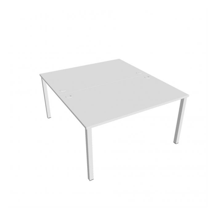 Zdvojený pracovný stôl rovný. Doska stola z kvalitného lamina. Pevná kovová konštrukcia podnožia zo štvorcových profilov 50 x 50 mm je tvorená kompaktnými pármi nôh, ktoré sú spojené priečnikmi. Výškovo nastaviteľná rektifikácia zaisťuje možnosť dorovnania prípadnej nerovnosti podlahy až o 1,5 cm. Stolová pracovná doska z LTD má hrúbku 25 mm a je zakončená 2mm hranou ABS, ktorá ju chráni pred poškodením. Samozrejmosťou sú káblové priechodky a systém pre zavesenie káblov pod stolovou doskou. Možnosť objednania bieleho či sivého prevedenia podnožia. Stolové doplnky, kontajnery a skrine vyberajte z ponuky kancelárskeho nábytku Hobis. Aby sa zásielka dostala v poriadku až do Vašej kancelárie, dodávame stoly demontované v niekoľkých samostatných a bezpečne zabalených škatuliach. Súčasťou každého balenia je tiež prehľadný návod. Na stoly UNI sa vzťahuje záruka 5 rokov. Farebnosť je ilustratívna.