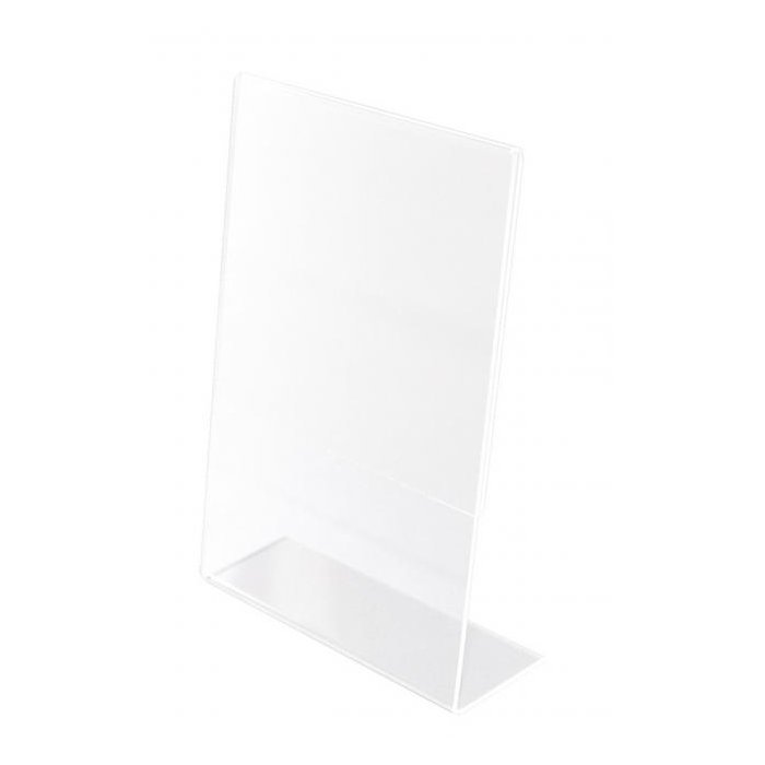 Vynikajúci nástroj pre marketingovú komunikáciu. Univerzálny stojan z materiálu, odolného proti praskaniu. Ideálny na recepcie alebo v servisoch. Vhodný pre materiály v orientácii na výšku (vertikálne). Farba priehľadná číra.