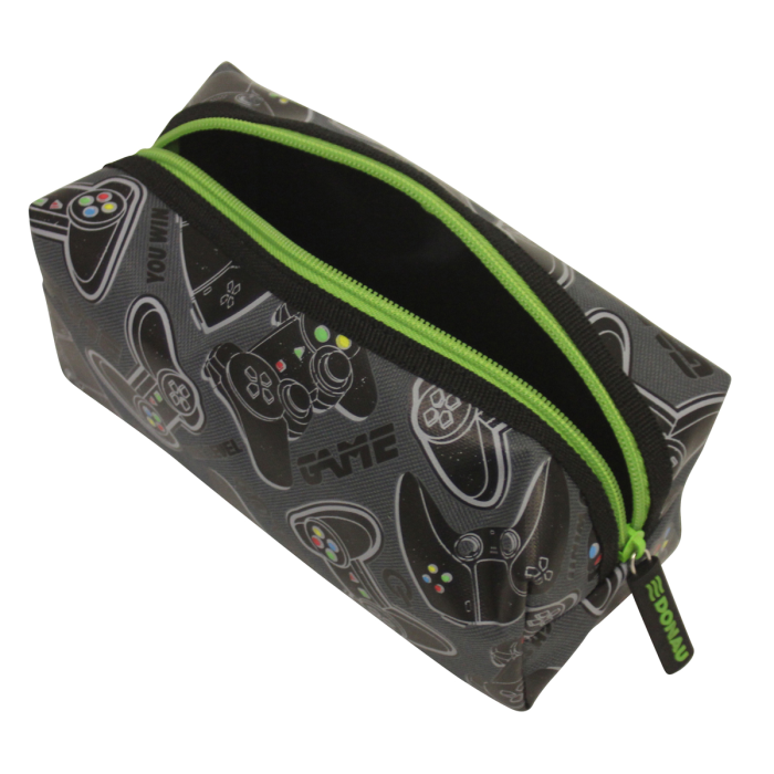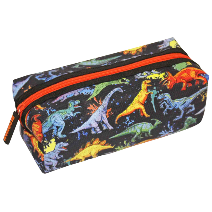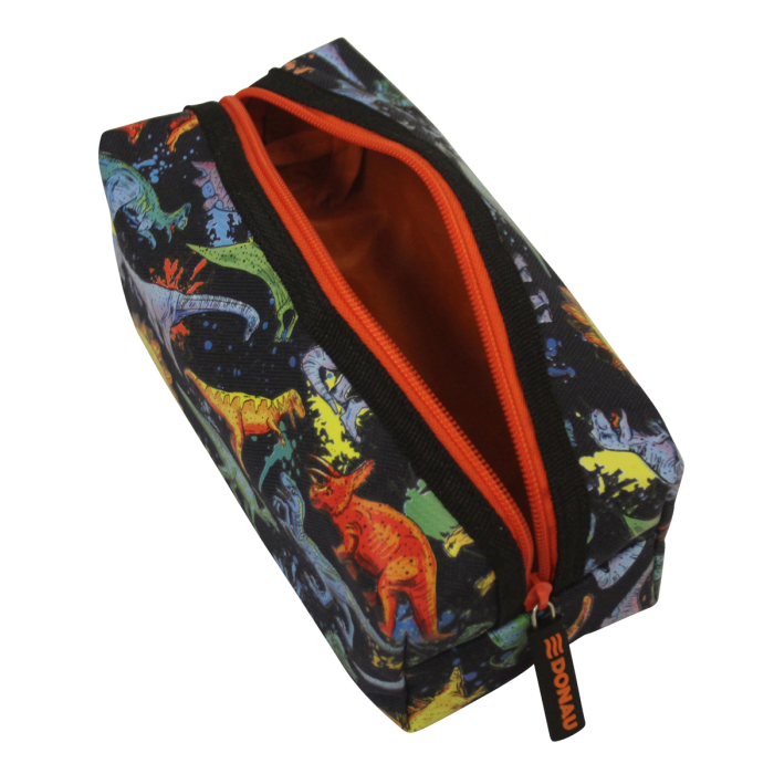 Puzdro na perá s 1 zipsom, 2 rôzne motivy (herný / dinosaurov), materiál polyester.