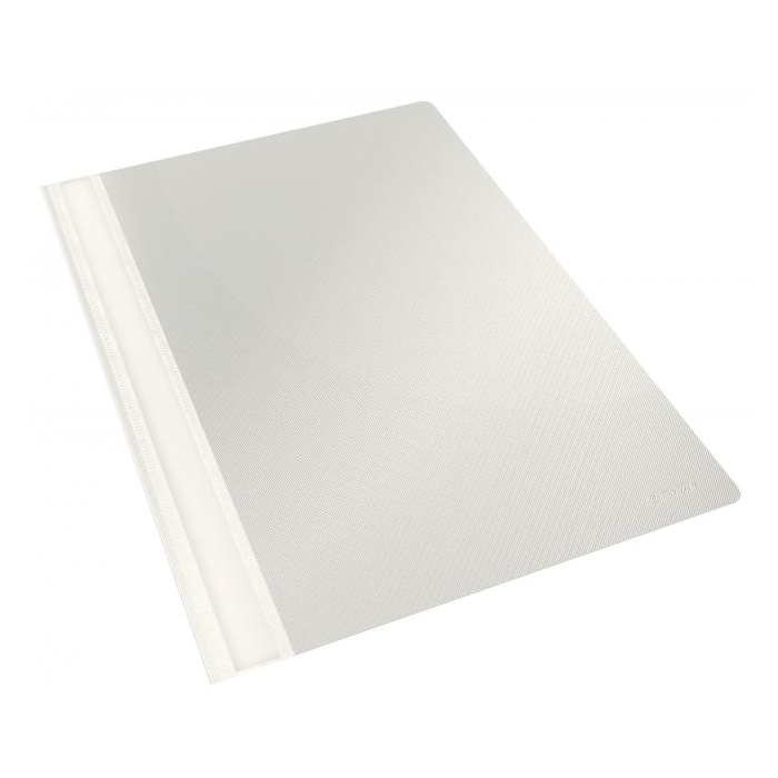 Dosky s rýchloviazačom sú vhodné pre zakladanie dierovaných dokumentov formátu A4. Sú vyrobené z kvalitného polypropylénu, a tým spoľahlivo ochránia vaše dokumenty po dlhú dobu aj pri každodennom používaní. - rýchloviazacia kovová spona pre ľahké založenie dokumentov, ktorými je možné jednoducho listovať - predná priehľadná strana dosiek nezakrýva titulnú stránku vloženej prezentácie či dokumentu - biely papierový zasuvací štítok pozdĺž hrebeňa slúži k označeniu obsahu dosiek - výkroj umožňuje ľahkú výmenu štítku - kapacita: 160 listov formátu A4 (80 g/m2) - v balení 25 ks - farba: biela