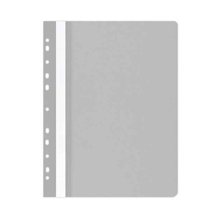 Rýchloviazač PP formátu A4 s priehľadnou prednou stranou a eurodierovaním. Farba matná sivá.