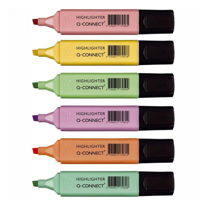 Zvýrazňovač so žiarivým pastelovým atramentom na zvýraznenie dôležitých slov. Hrot zrezaný, šírka stopy 1 - 5,2 mm, dĺžka písania cca 200 m. Väčšie balenie 10 ks v jednej farbe. Farba pastelová mix. Sada 6 kusov.