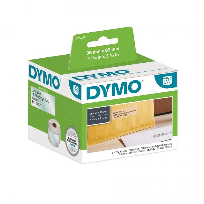 Etikety do tlačiarní Dymo LabelWriter 450 a Labelwriter 450 Duo sú navinuté v rolke. Materiál číry plast. Farba: číra/plast Rozmery: 89x36 mm Balenie: 1x260 ks