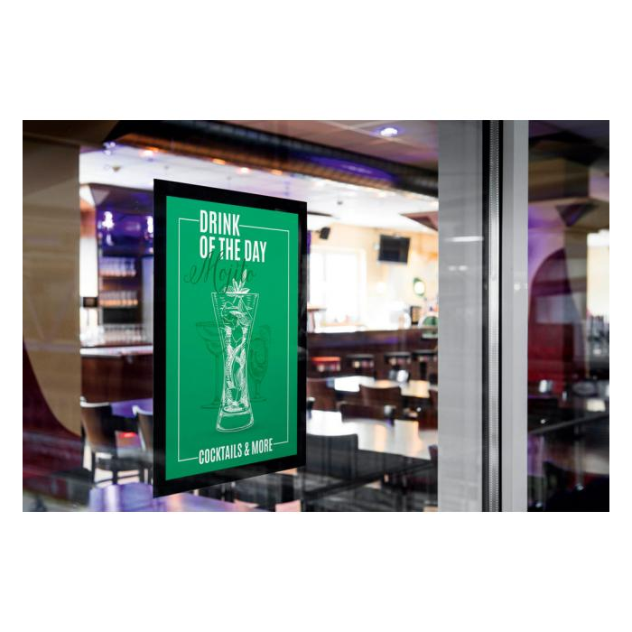 • obojstranná čitateľnosť na sklenených plochách vďaka možnosti vložiť 2 dokumenty