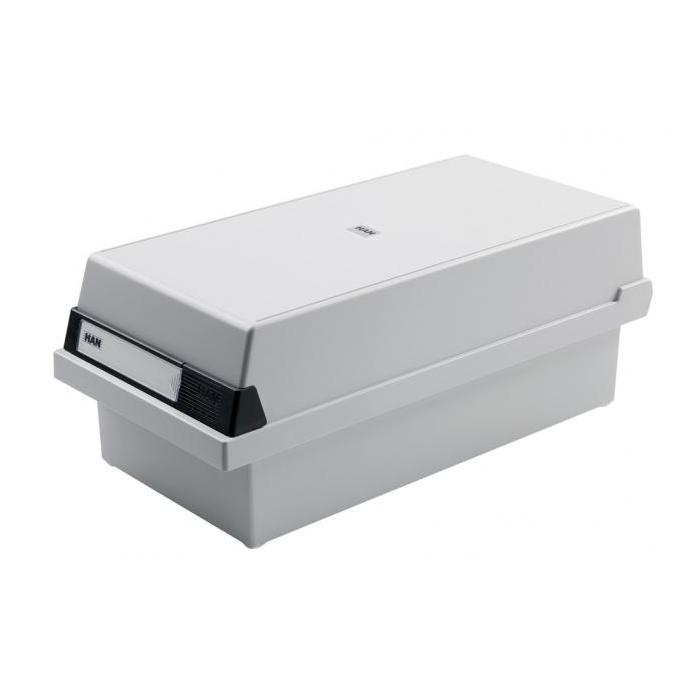 Kartotéka z antistatického nárazuvzdorného plastu pre 1000 kartičiek ukladaných horizontálne. Vybavená dvoma plastovými oddeľovačmi, (inak prázdna) a ochrannými plstenými podložkami. Pri používaní možno odňať kryt a podložiť ho pod kartotéku. Dĺžka 36 cm.
