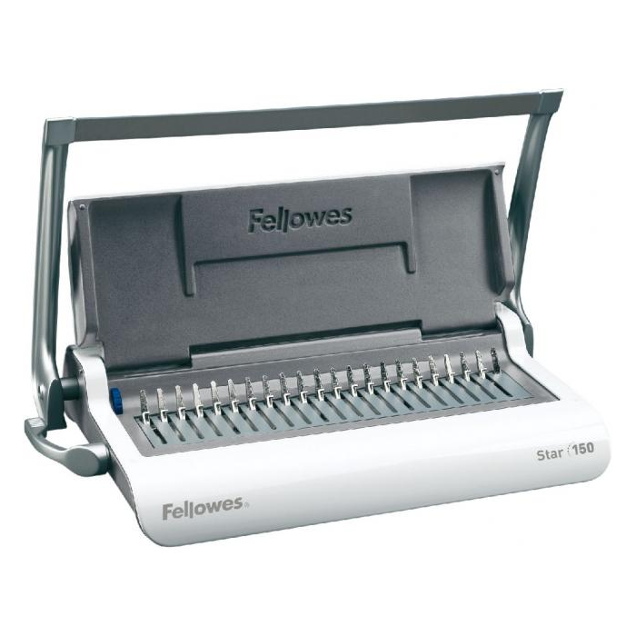 Malé manuálne viazacie zariadenie, ideálne do domácich alebo malých kancelárií s občasným použitím. Elegantný a pevný dizajn s možnosťou vertikálneho zloženia pre šetrenie s pracovným miestom pri nepoužívaní.Súčasne predieruje maximálne 10 listov papiera A4 80 g. Zviaže do 150 listov 80 g papiera (priemer hrebeňa 6 až 18 mm).